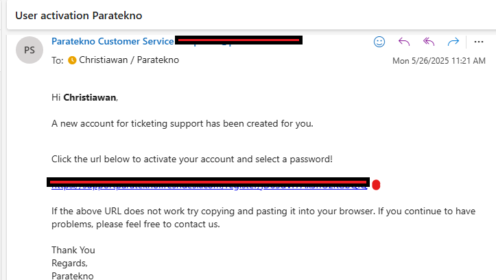 1. Cek Email kamu. Untuk user yang pertama kali membuat tiket pasti terdapat email untuk aktivasi akun.