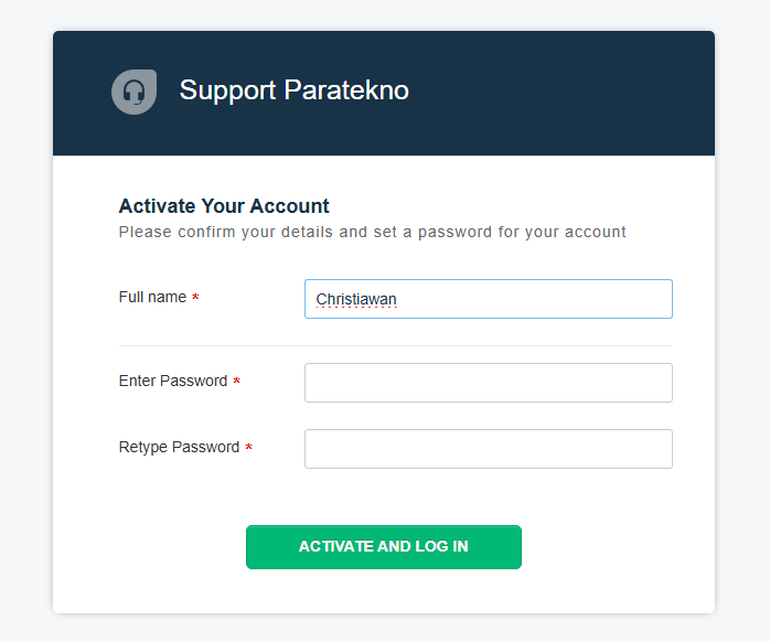 2. Masukan password yang Anda inginkan. Activate and Login