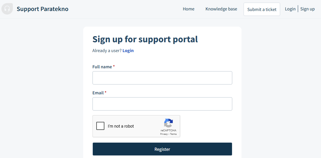 1. Kunjungi ticket.paratekno.com .Klik Sign Up